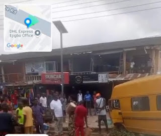 OVER SPEEDING : DRIVER AND CONDUCTOR ABSCOND AS COMMERCIAL BUS FATALLY STRIKES PEDESTRIAN, INJURES TWO OTHERS AT IYANA EJIGBO, LAGOS.